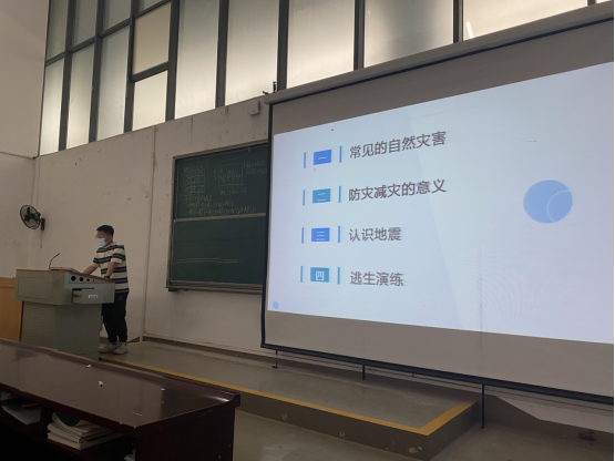 (通讯员 席浩峰)今年的5月12日是第14个全国防灾减灾日,为切实提高恩施校区师生的防灾减灾意识,2021级助学班于5月12日下午5点在修远楼5B508开展“防灾减灾 珍惜生命”主题安全教育班会,此次班会由辅导员席浩峰对学生进行“防灾减灾”安全教育知识的普及。