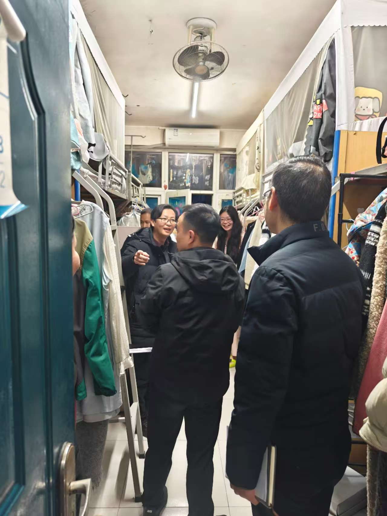 检查过程中,检查组重点排查了宿舍内违规用电等消防安全隐患,现场提出了整改意见,并要求立即落实。王关锋部长一行还专程走访慰问了少数民族学生宿舍,与同学们亲切交流,细致询问学生在校学习与生活状况,叮嘱大家要时刻绷紧安全弦,严格遵守宿舍管理规定,高度重视用电与消防安全,不断增强防范意识和应急处理能力。