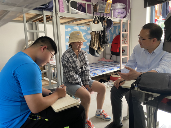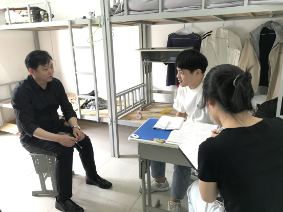 值此机会,张慧和赵新军深入学生寝室,与各自学海领航结对学生展开亲切交谈。张院长与结对学生库加孜在生活习惯适应、学习状态等方面进行交流,并鼓励该同学要以学习为主,争取早日通过自学考试,希望在学校期间能学有所成、学有所获;赵院长与结对学生高晓龙在身体健康、学习生活、校内兼职等方面进行了关心了解。另外,两位领导也对学生们的出行安全做了温馨提醒。