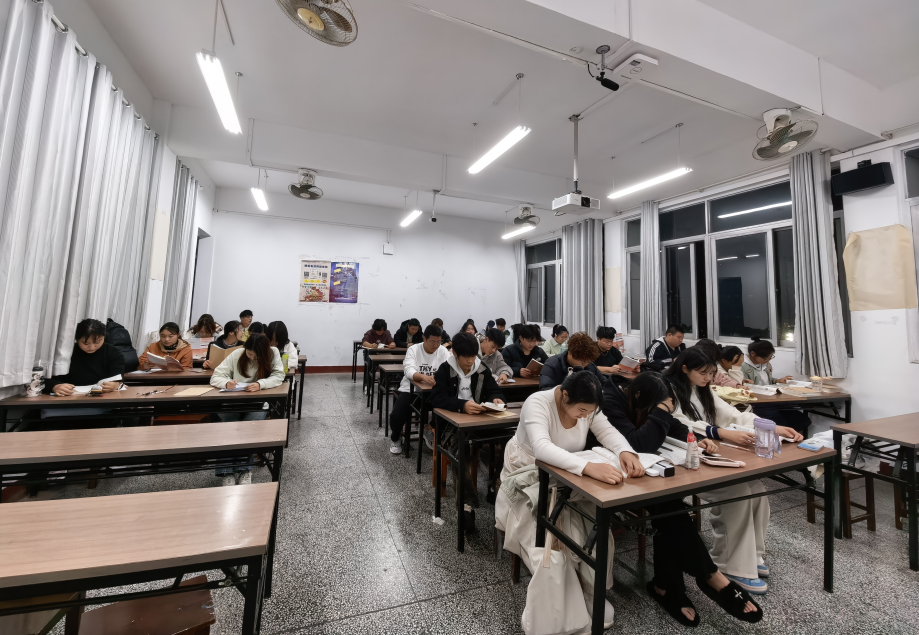 早操结束后,同学们陆续走进教室,投入自主早自习。有人专注聆听英语课程,有人伏案疾书完成作业,也有人静心预习新课,每个人都沉浸于自己的学习节奏中。如果说早操与早自习是“晨光二重奏”,晚自习则是校园的“静夜思”。晚上七点,同学们陆续就座,复习当日课程。教室里一片安静,只有纸笔摩挲与翻书之声,偶有低声交流,学习氛围浓厚。