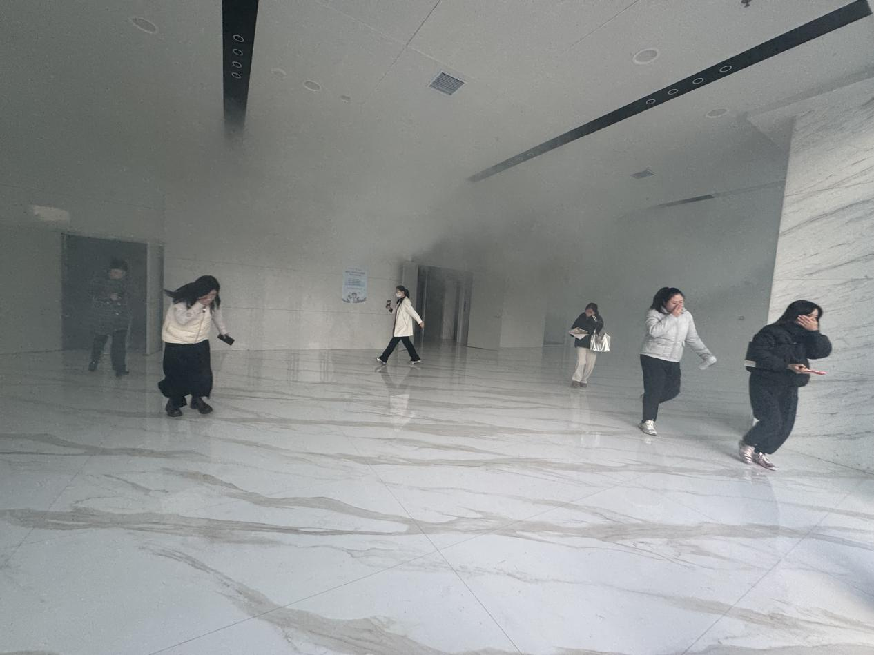 随后的疏散逃生演练中,随着警报声响起,在场人员在工作人员引导下,迅速用湿毛巾捂住口鼻、弯腰低姿,沿预定路线快速有序撤离至安全区域,整个过程高效顺畅、秩序井然。