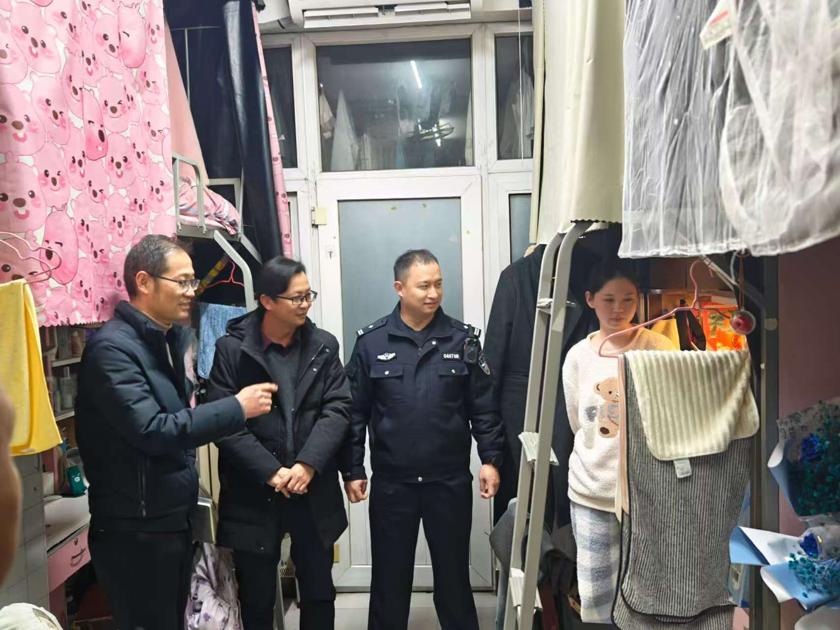 检查过程中,检查组重点排查了宿舍内违规用电等消防安全隐患,现场提出了整改意见,并要求立即落实。王关锋部长一行还专程走访慰问了少数民族学生宿舍,与同学们亲切交流,细致询问学生在校学习与生活状况,叮嘱大家要时刻绷紧安全弦,严格遵守宿舍管理规定,高度重视用电与消防安全,不断增强防范意识和应急处理能力。