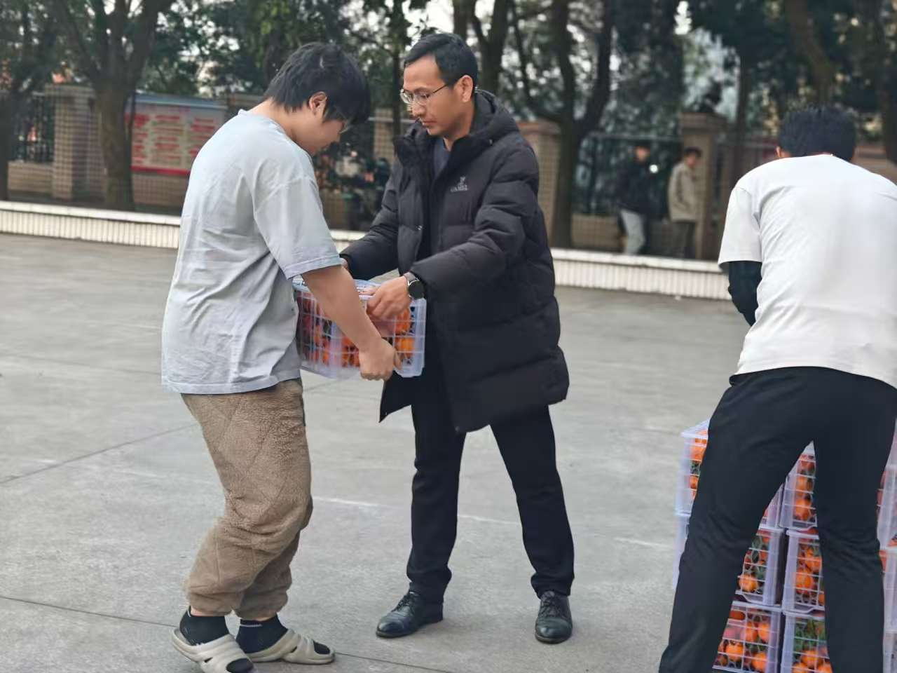 暖冬送橘递温情 安全嘱托护成长 ——我院汽院校区开展“爱心橘子”发放活动