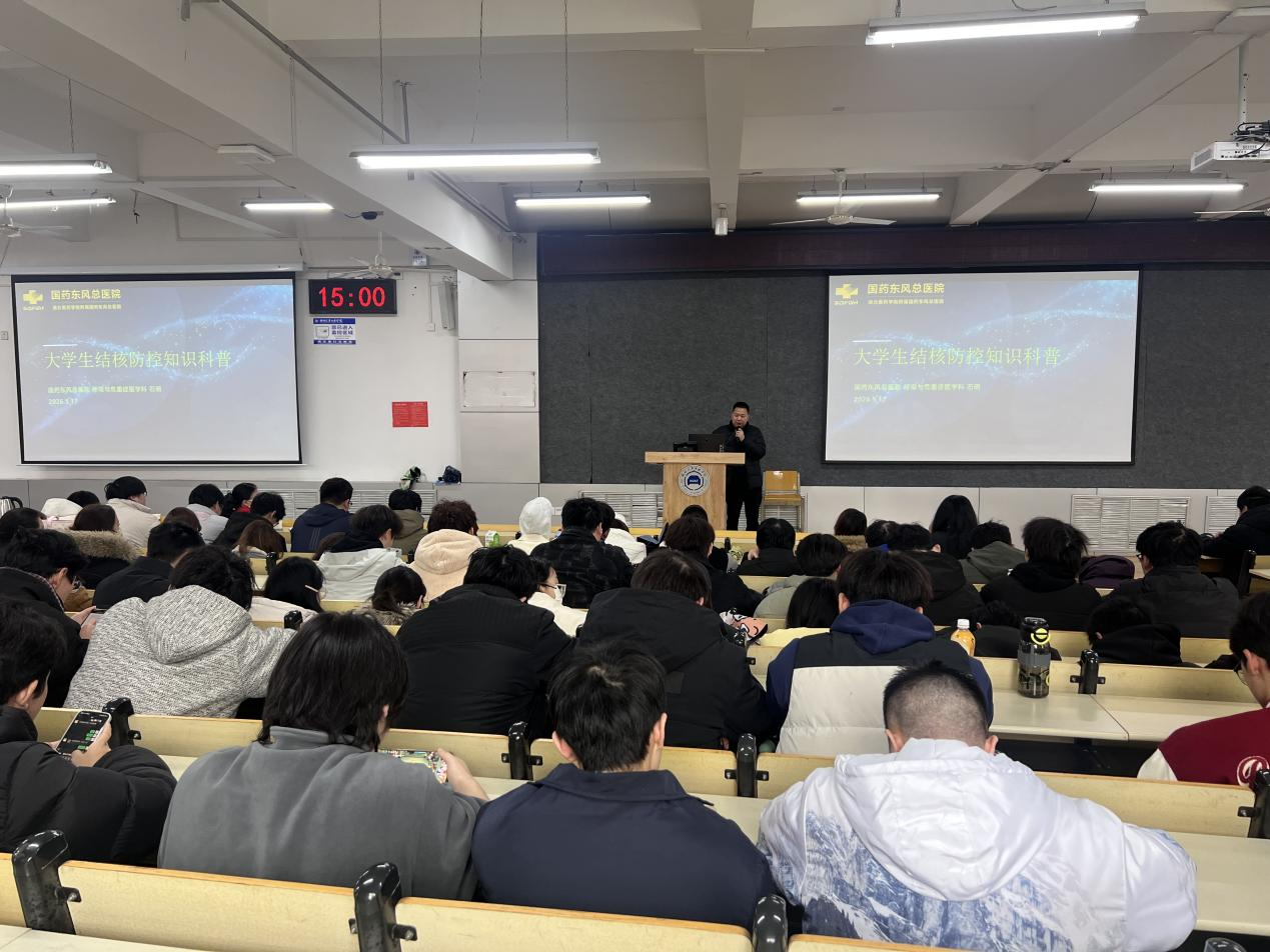 讲座中,石明医生围绕肺结核防控展开讲解,介绍结核病是由结核分枝杆菌引起的慢性传染病。他结合世卫组织2023年报告数据,分析高校因人员密集、空间封闭,成为防控重点场所。针对大学生易感原因,石医生从集体生活、社交频繁、免疫力相对较低等方面进行剖析,强调持续咳嗽、午后低热、夜间盗汗等早期症状需高度警惕,并系统阐述了“早期、适量、联合、规律、全程”的规范治疗原则。